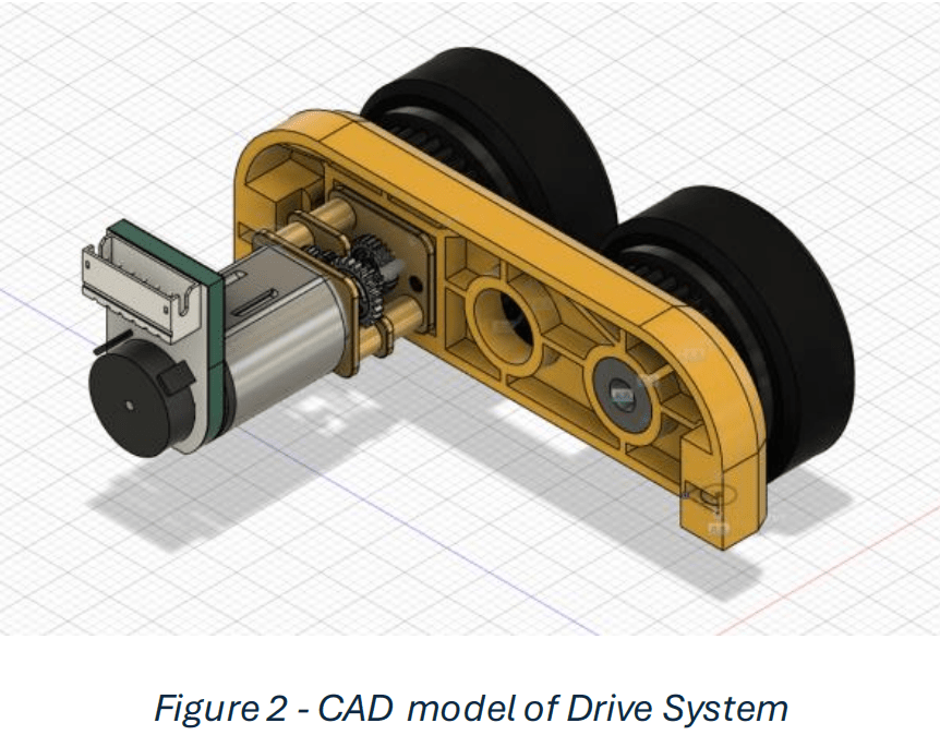 transmission. The Plastic motor mount is printed in ABS plastic using a FDM 3d printer and the wheels and Gears are printed using a SLA process